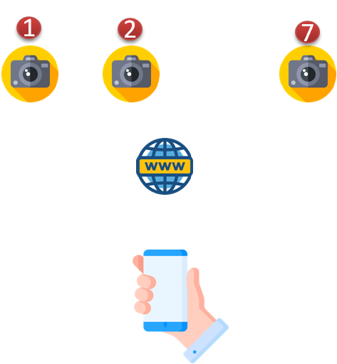 Arduino camera embedding C++ logic, accessible remotely via the internet through an android application capable of viewing up to 7 cameras simultaneously