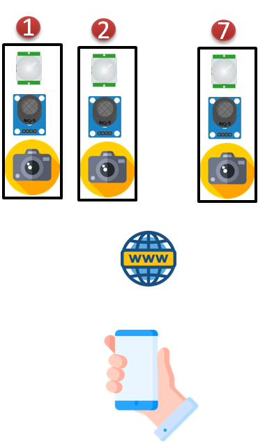 iot equipment including an arduino camera, a presence detector, a smoke or gas detector, in connection with a remote monitoring application including the vision of the cameras as well as an alert if presence detection or gas or smoke detection